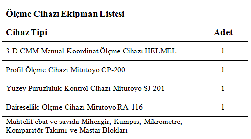 Firmamızın ISO 9000 kalite standartlarına göre oluşturulan ölçüm sistemi ve ekipmanları piyasa koşullarının el verdiği en üst düzeydedir ve sürekli geliştirilmektedir. Kalite sisteminin yaptığımız her parçanın teknik spesifikasyonlarına cevap verecek düzeydedir.